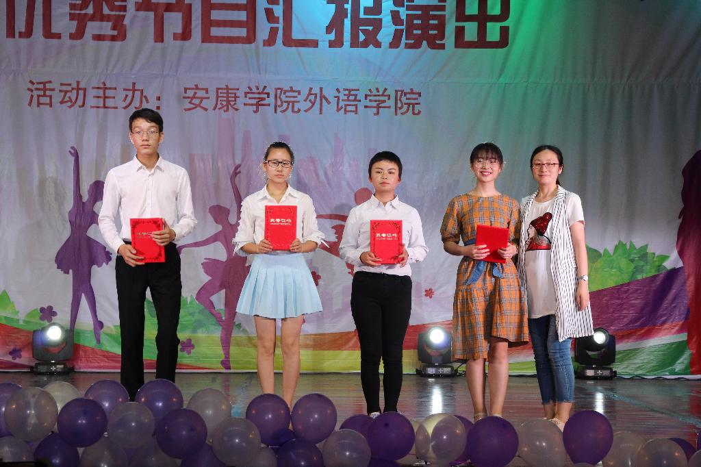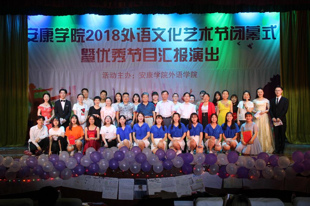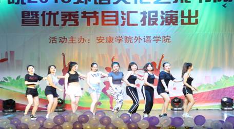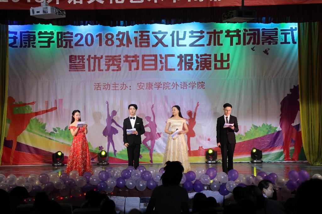 6月21日晚七点三十分,安康学院外语文化艺术节闭幕式暨优秀节目汇演在江南校区大礼堂隆重举行。学校首席专家党天才教授,宣传部长鲁延安、教务处副处长张纪生、学工部副部长黄娟、校团委副书记肖红香、外语学院领导班子出席闭幕式,来自全校各院系的五百余名师生参加了此次活动。