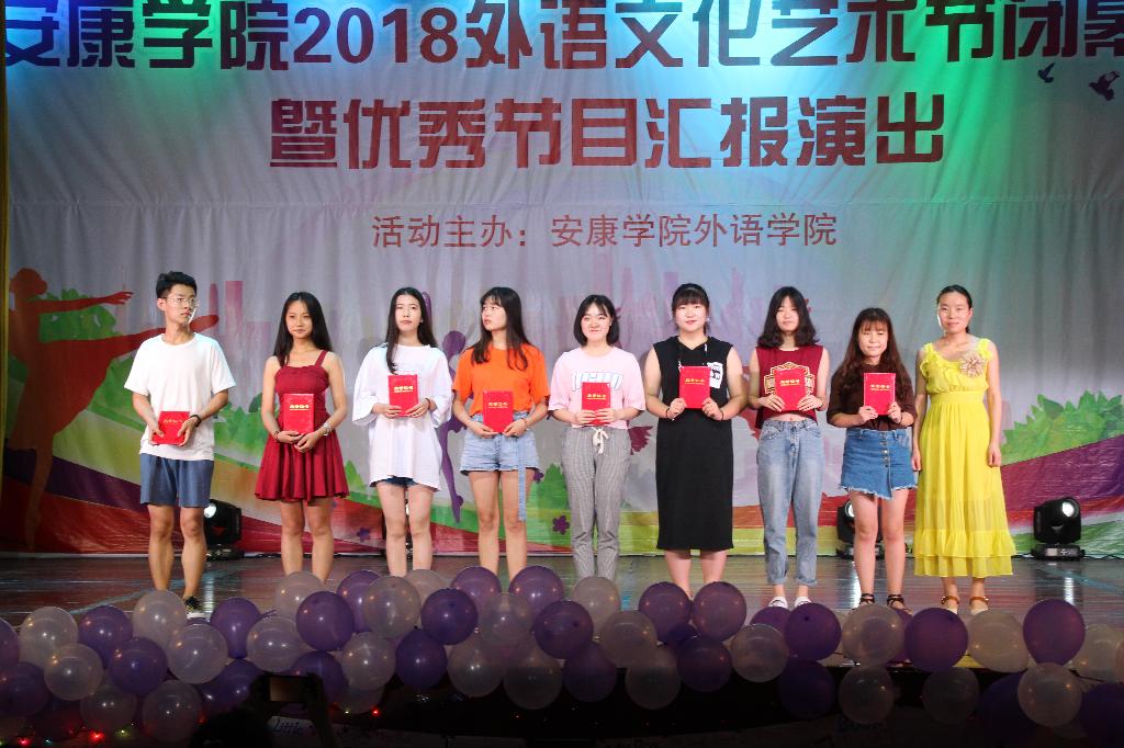 晚会现场,与会嘉宾还分别为在此次文化节期间做出突出贡献的社团成员及学生会优秀干部颁发了荣誉证书。外语文化艺术节总策划人冯琳老师对为期二十余天的文化艺术节进行了总结。整台晚会由外语学院五大专业社团的优秀获奖节目贯穿始终,辅以精彩的互动内容,将“汇报”与“演绎”有机结合,表现形式新颖,创意别出心裁,得到了领导与专家们的一致好评。