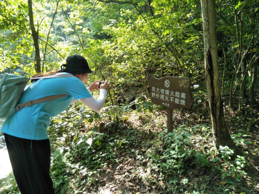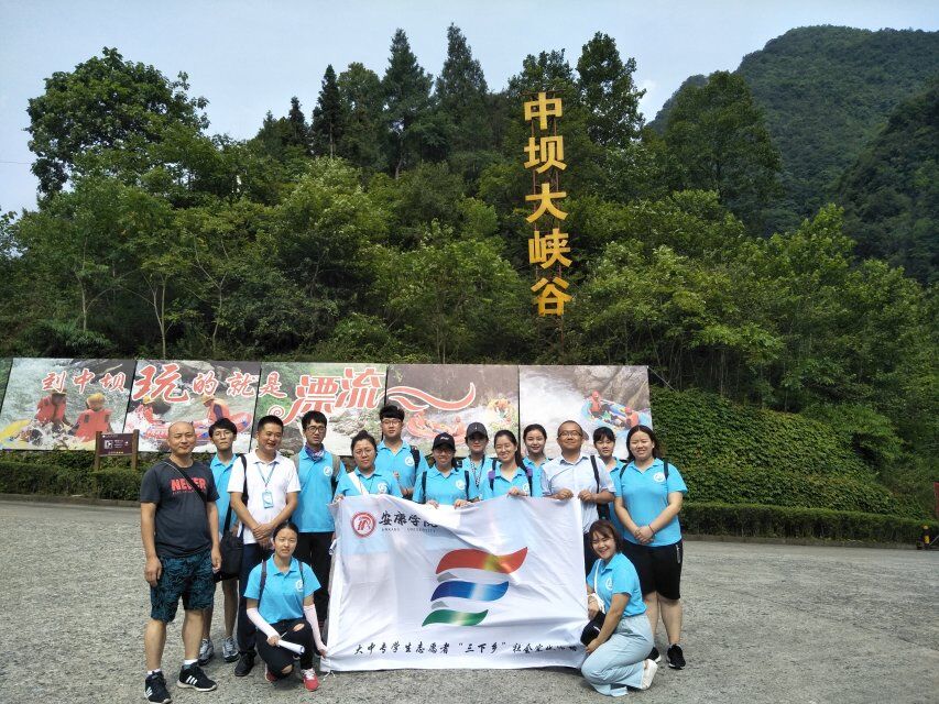 实践团队一行十六人早上7:00从学校出发,上午10:00来到石泉县中坝大峡谷实践点,景区负责人李峰经理已在景区门口热情等候。在李峰经理陪同下,实践团开始中坝大峡谷景区实践活动。队员们沿着景区路线,收集公示语标识牌及英译的第一手资料,对景区游客和工作人员进行公示语英译语言规范性的问卷调查,队员们还收集了相关人群对标识语英译的准确性和规范性的意见和建议。