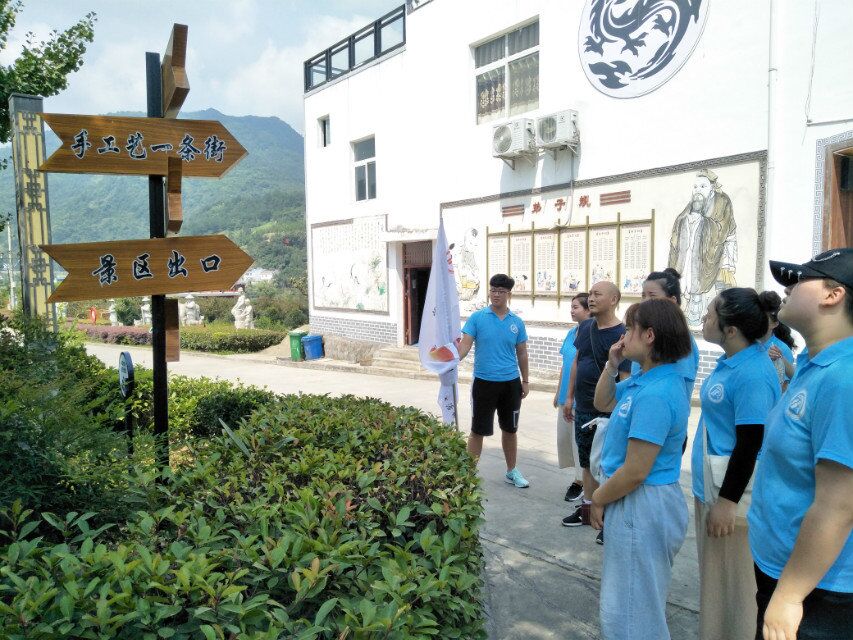 7月13日早上7:00,在团总支书记郝礼军、专业指导教师贠旭带领下,实践团队一行16人迎着朝霞,告别都市的喧嚣,开启了暑期社会实践第一站:天书峡景区公示语英译语言规范性调研。上午11:00实践团队来到了四面环山,空气清新,碧水蓝天的平利县天书峡景区。同学们对景区公示语进行拍照、对游客进行采访和问卷调查、对景区工作人员进行访谈、收集相关人群关于景区公示语英译的必要性和准确性的意见和建议。沿着景区的主干线,实践成员们边收集公示语标牌及其英译的第一手语料,边讨论分析英译的规范性。在老师的指导和帮助下,同学们发现了景区公示语英译存在的许多问题。
