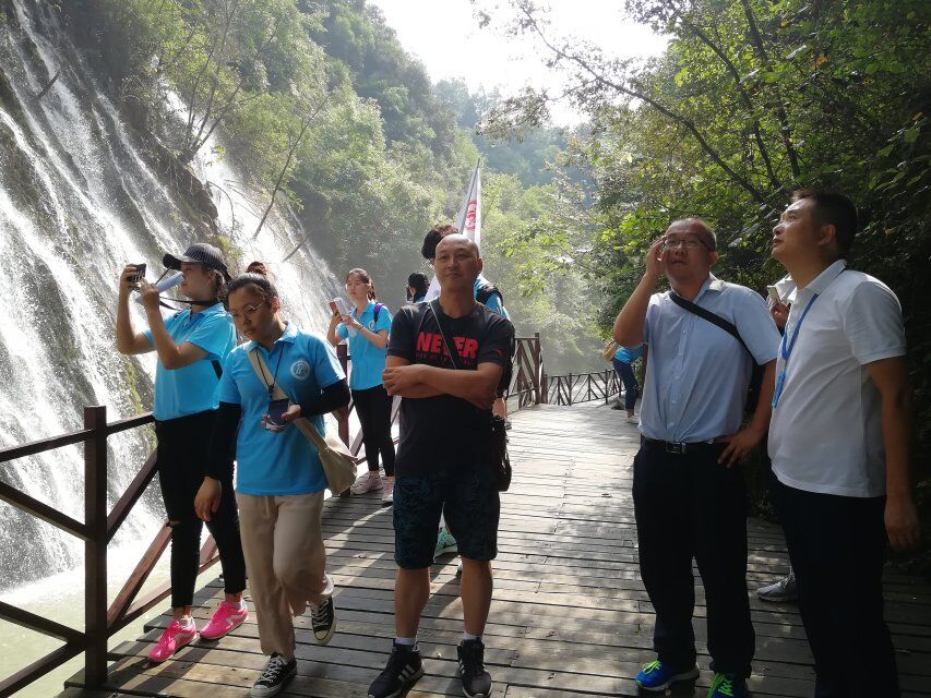 李峰经理与实践团队进行座谈,详细介绍了中坝大峡谷开发背景和现在经营情况,同时对景区建设时期的公示语英译工作也做了介绍,欢迎实践团对中坝大峡谷景区公示语英译工作进行调研。并表示,这将有利于提高中坝大峡谷景区品味和景区进一步开发与发展。