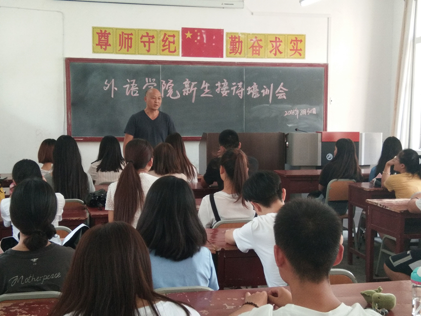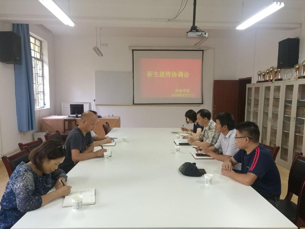 为确保迎新工作有序进行,8月27日下午我院召开迎新工作协调会,会上,学院院长、党总支书记就迎新工作安排进行部署,并强调各个环节;学工办、院办分别召开了志愿者培训会和教师面试培训会。为了保证家庭经济困难的新生顺利入学,学院专门设立“外语学院绿色通道咨询处”,设立专人进行疑惑解答并亲自带领现场办理相关手续。