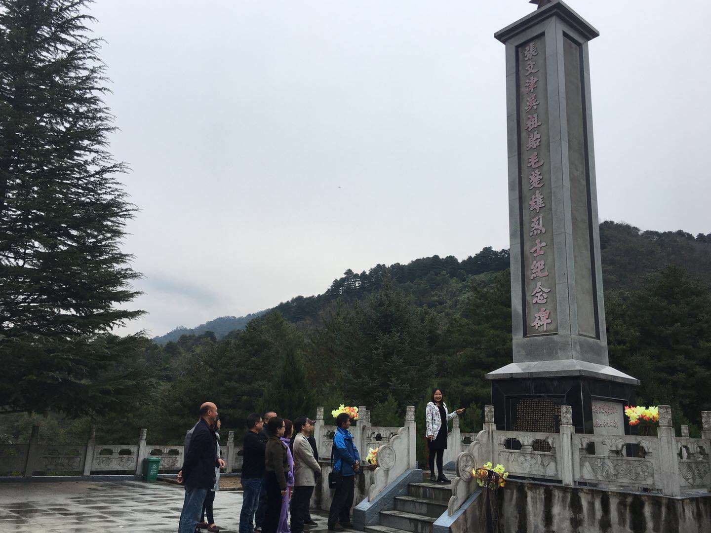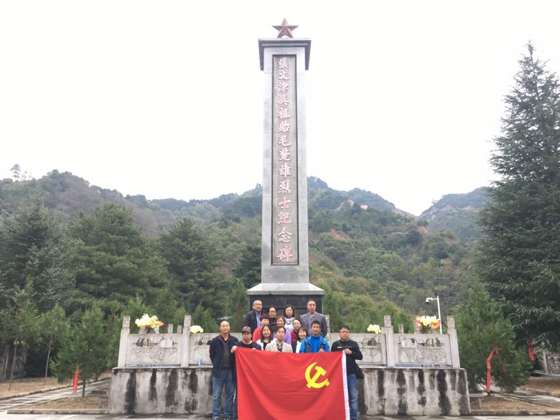 2018年10月13日中午,经过4个半小时车程,外语学院党总支(教工一支部、二支部党员教师以及学生支部党员)来到宁陕县江口镇烈士陵园。在革命先烈张文津、吴祖贻、毛楚雄三烈士纪念碑前,全体党员向烈士默哀,瞻仰烈士纪念碑,参观烈士纪念馆。