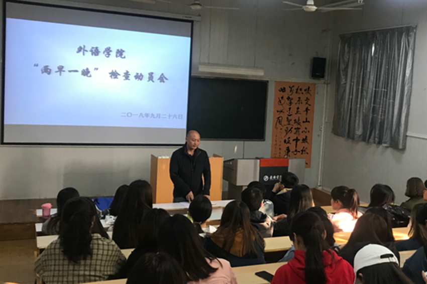 为了深入贯彻落实学校《关于在学生中持续开展“两早一晚”活动的通知》,加强学风建设,外语学院坚持开展“两早一晚”检查,引导学生养成良好的学习生活习惯,形成良好的学习氛围。