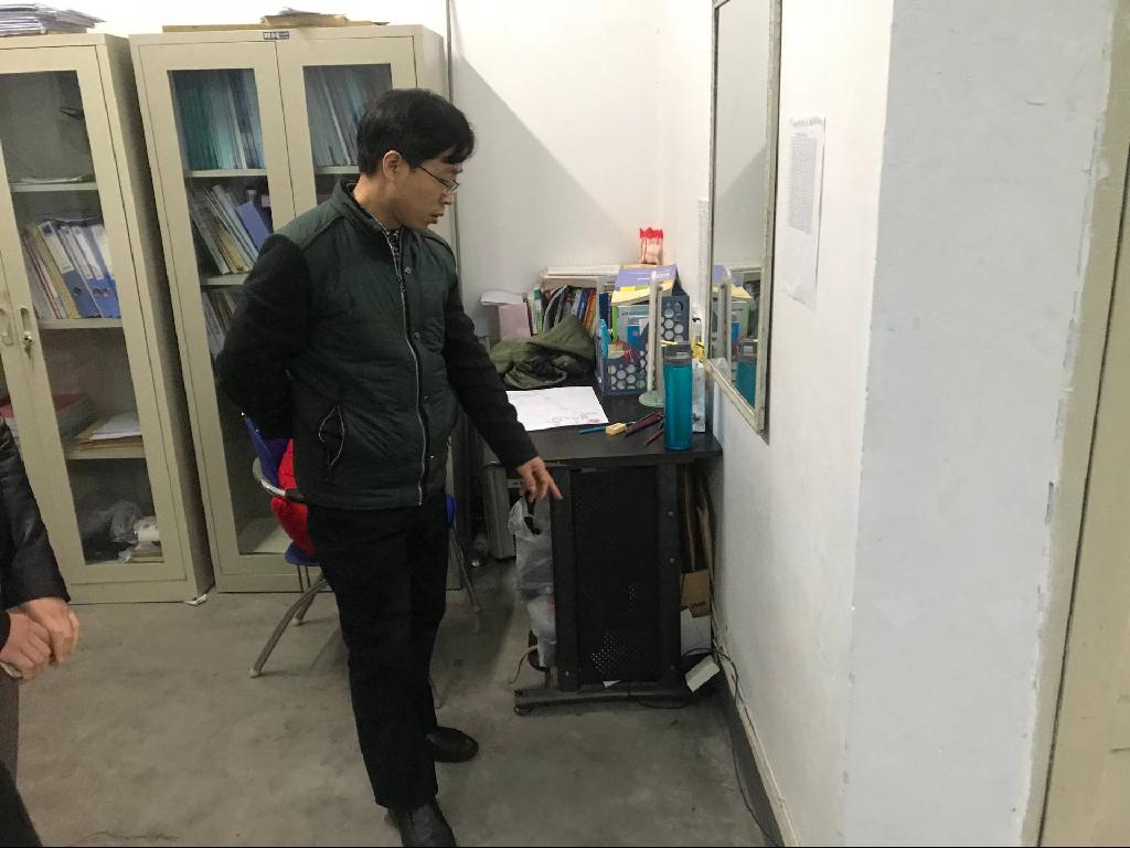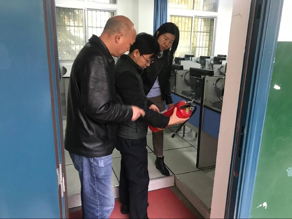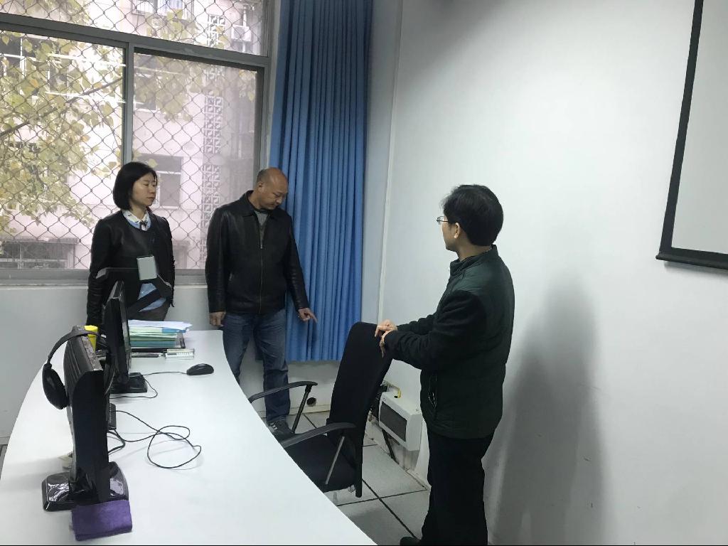 对办公室和实验室检查时,检查人员对用电电线路、插板和消防器材进行认真检查,确保冬季用电安全。