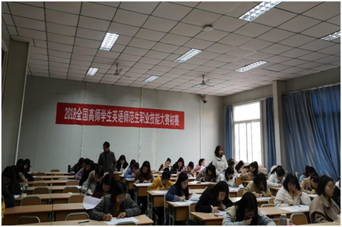 11月18日,由外语学院承办的2018全国高师学生英语教师职业技能竞赛初赛暨校内选拔赛在江南校区1012和1014教室举行。我校90名英语师范生参加了本次比赛。