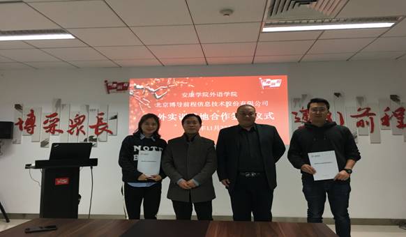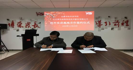 我院与北京博导前程信息技术股份有限公司西安分公司成功签订校外实训基地合作协议,进一步推动我院商务英语专业建设,为今后应用型商务人才培养奠定良好基础。