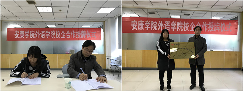 首先,双方就今后共建就业实习基地事宜进行了洽谈,续签了共建就业实习基地协议,并举行了校企共建安康学院外语学院实习就业基地授牌仪式。