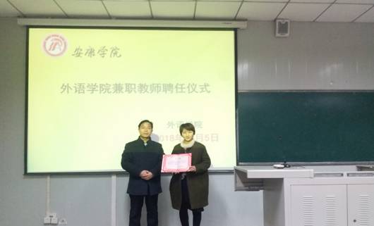 课前,我院举行了外语学院双师课程兼职教师聘任仪式,张哲华为汪贞老师颁发了聘书。随后,汪老师为英语专业师范生讲授了“中小学英语教学听说教学”这一重要模块。