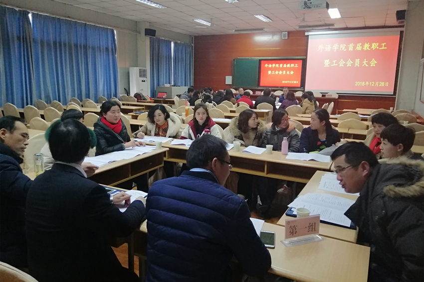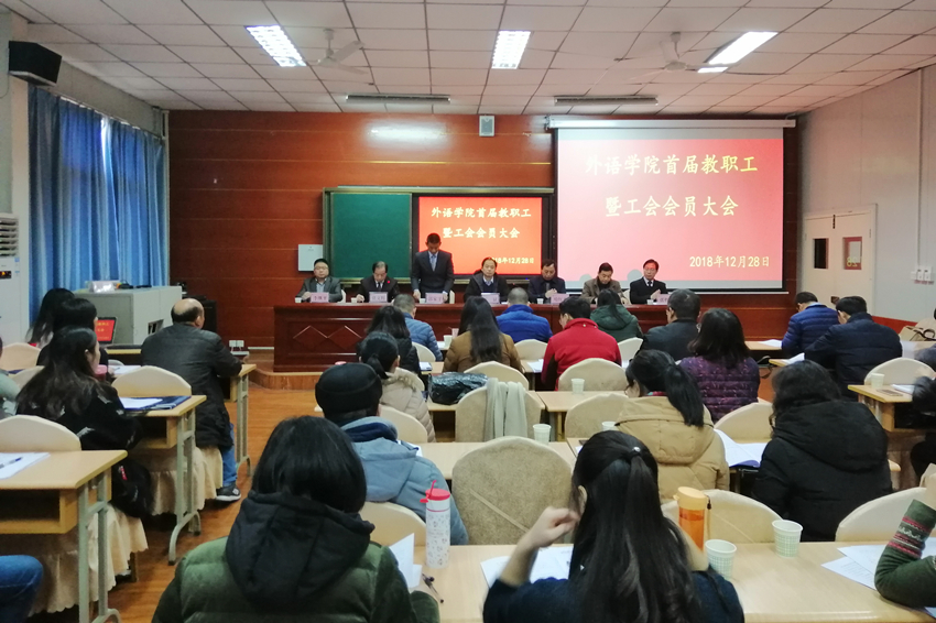 外语学院首届教职工暨工会会员大会于12月28日在1018教室隆重召开。大会由工会外语学院分会主席冀文辉主持。