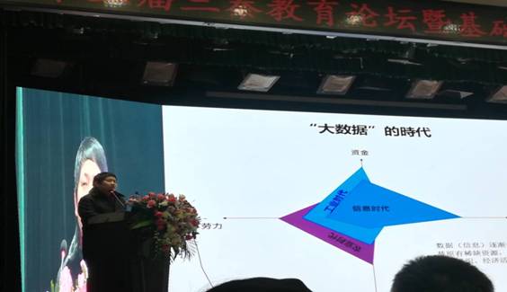 在大会报告中,北京师范大学教育技术学院博士生导师余胜泉教授就时代需要“分布式认知+人机结合”、 破解个性化教育难题、打造“学习+创新+运用人工智能工具”型教师、创建“线上线下”学习空间等主题,深入阐述了教育大数据对培养学生个性、综合评价、精准教研、教学质量改进模型等重要意义。他指出,基于教育大数据,建立促进个性化发展的教育体系是未来学校发展的基本趋势。 华南师范大学教育技术学教授、博士生导师、未来教育研究中心主任焦建利用丰富的教学元素向大家展示了随着互联网为代表的信息技术的迅猛发展。他指出,全球各级各类学校在开放的教育世界背景下,和学校有关的所有因素,学生、教师、教室、课堂、学校,都需要重新被定义。而这一切其最根本的就是教师,就是教师的学习,教师要借助技术的学习和专业发展。