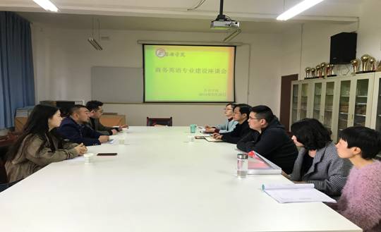 座谈中,丝路城跨境电商学院执行院长李元林首先介绍了丝路城控股集团现状及发展,并就跨境电商学院的课程设置进行了详细说明,提出以“双资性”、“双师型”为导向,服务于学校、学生、企业三方需求;以师资合作,校外实训,定向委培,企业孵化等模式进行校企人才共建。张哲华向对方介绍了我院商务英语专业办学概况及面临的机遇与挑战,并就应用型本科院校如何更精准地为社会输送人才,如何加快商务英语专业升级转型,主动适应企业需求等问题与企业代表进行了深入交流探讨。最后,商务英语专业团队的老师们纷纷就“双师型”课程共建、师资培训、实习实训及企业定向委培精品班课程体系、合作模式进行了热烈探讨。