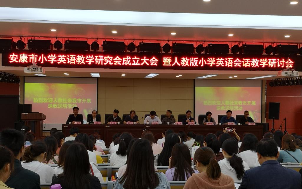 5月30日,安康市小学英语教学研究会成立大会暨人教版小学英语会话教学研讨会在汉滨区果园小学召开。安康市教体局基础教育科科长陈世理、安康市教研室主任程玉林、安康市教育学会副会长蒲耀才、汉滨区教研室主任朱寿安及人教社教材培训专家,安康市各县区小学英语教研员、小学英语教师等200余人出席了会议。会议选举产生了首届理事长及理事会成员,我院张哲华副院长当选安康市首届小学英语教学研究会理事长,安康市教研室小学英语教研员江利侠当选副理事长及秘书长。成立大会由安康市教研室主任程玉林主持,汉滨区教研室主任朱寿安致开幕辞。