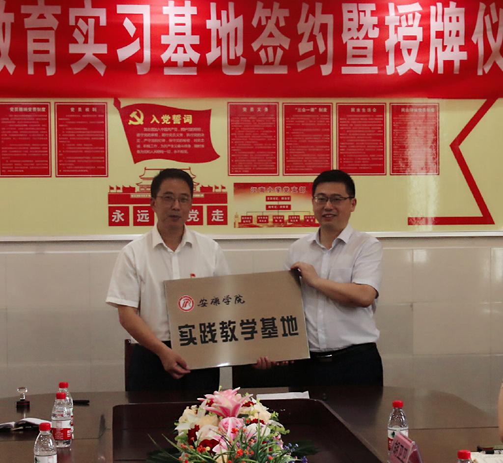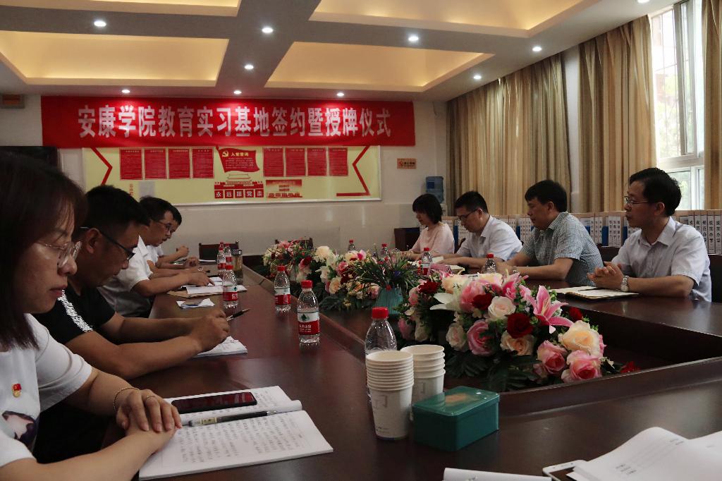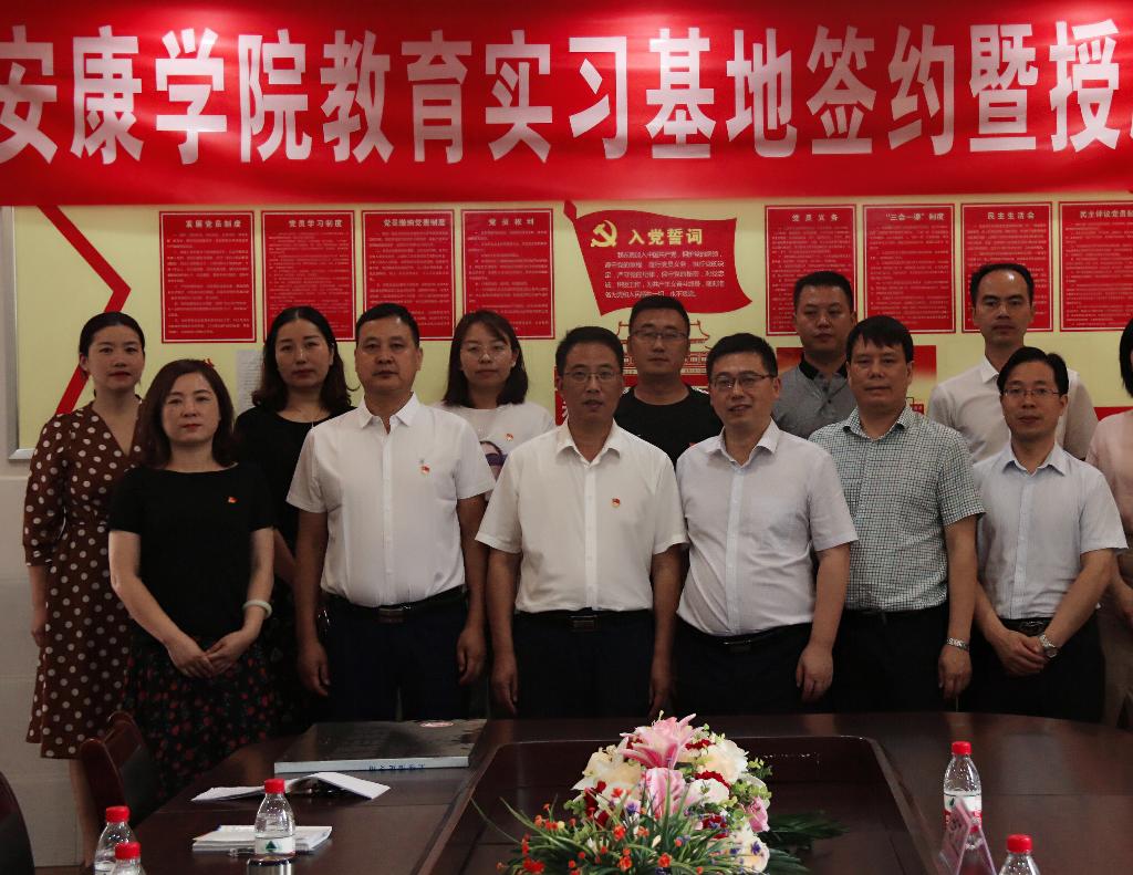 7月1日,安康学院教育实习基地签约暨授牌仪式在汉滨区江南小学举行。安康学院教务处处长余谦、副处长张纪生、外语学院副院长张哲华、胡卫卫及江南小学全体校委会成员出席签约暨授牌仪式。