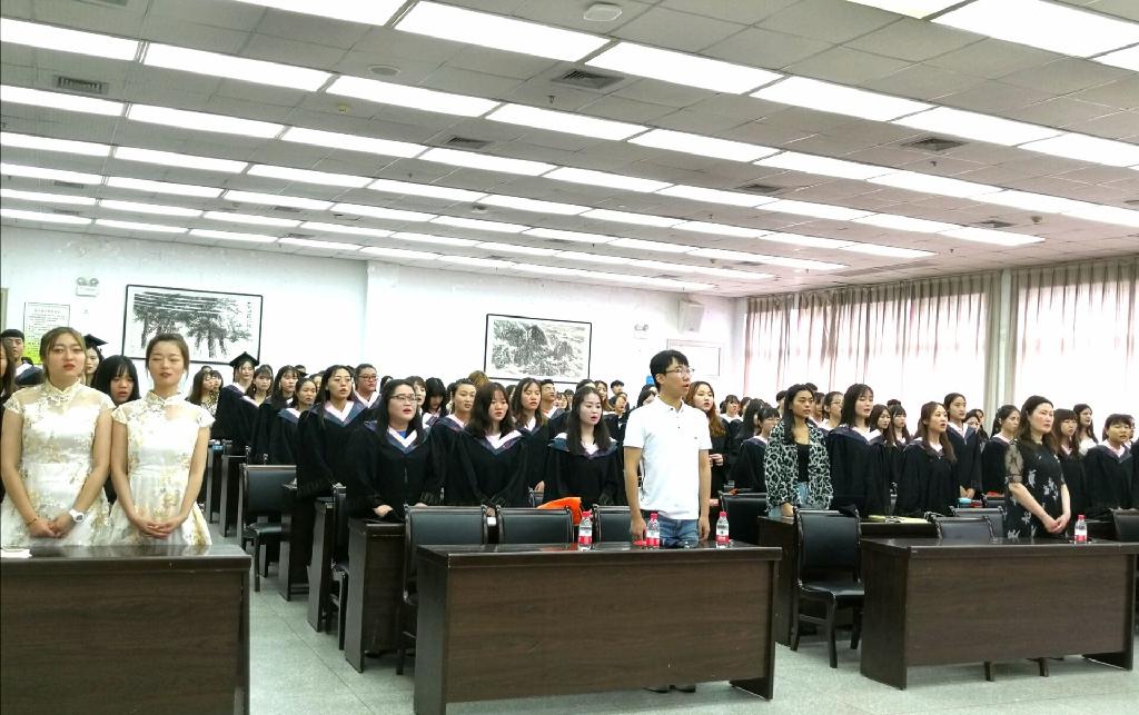 毕业典礼在雄壮的国歌声中拉开序幕。外语学院副院长张哲华致辞并宣读学士学位授予决定。张院长循循善诱的致辞表达了他对全体毕业生顺利完成学业、即将踏上崭新征途的衷心祝贺,并向他们的父母、教师表示深深敬意。在离别之际,张院长对即将踏入社会的毕业生悉心叮嘱了三方面:一是怀抱梦想,扛起责任,朝着梦想,持之以恒;二是脚踏实地,拓新立业,不怕吃苦;三是豁达坚毅、修德正行,做个有道德的人。
