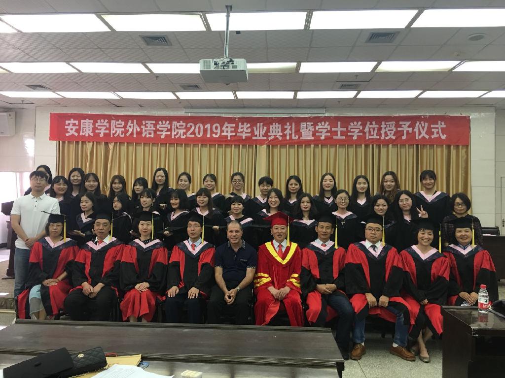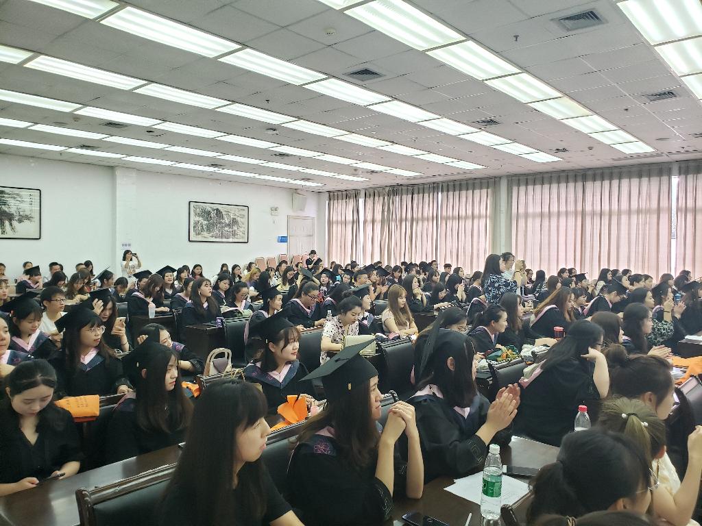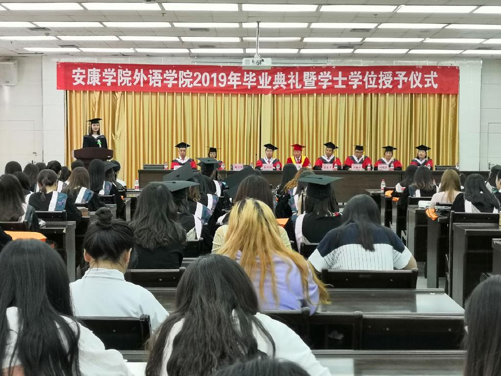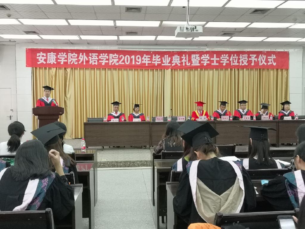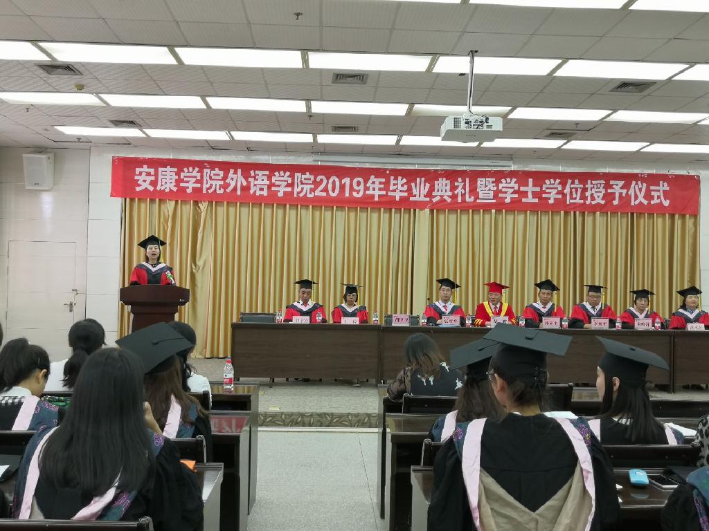 7月3日上午10点,我院在江南校区图书馆报告厅举行2019届毕业典礼暨学位授予仪式。学校党委副书记胡波、外语学院领导班子成员、导师代表、系主任、辅导员及全体毕业生近二百人参加了毕业典礼。典礼由外语学院副院长胡卫卫主持。