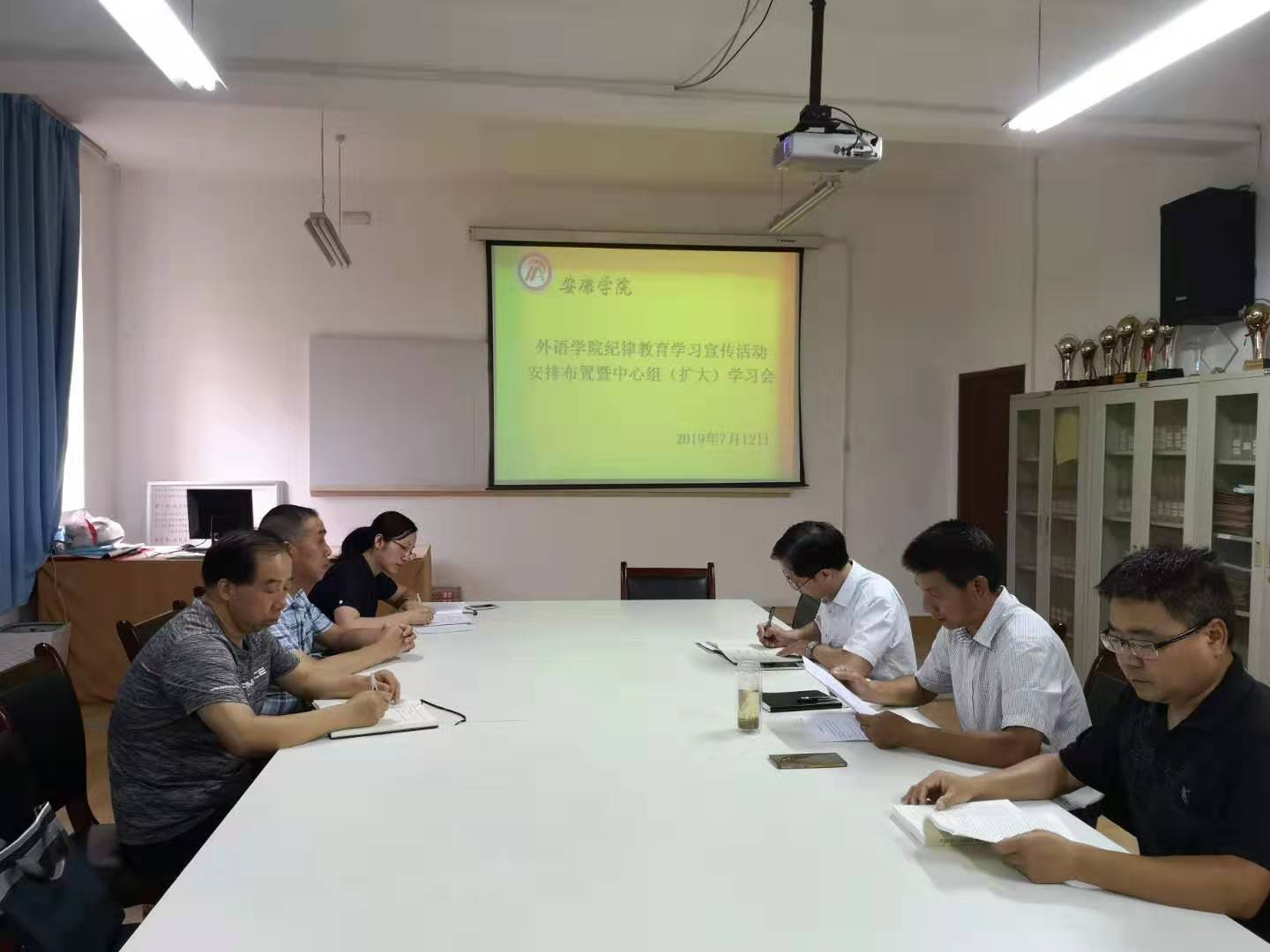 随后,郭家平组织与会人员学习了校党发2019(100号)《关于在全校开展第二个纪律教育学习宣传月活动的通知》的文件,并宣读了《外语学院纪律教育实施方案》,要求各支部层层落实纪律教育活动,利用暑假切实开展自学活动。