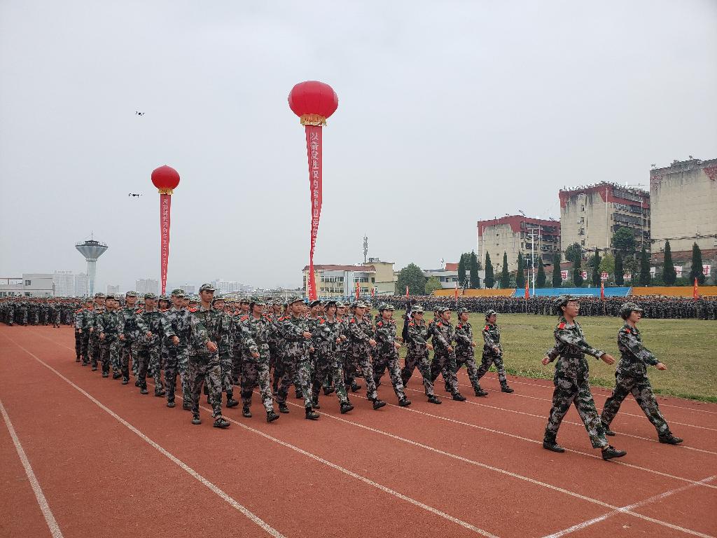 2019级新生为期10天的军训工作,在部队首长和学校党政领导的重视、关心和支持下,在学生处严密组织和精心安排下,在承训教官和各二级学院有序组织下,顺利开展。