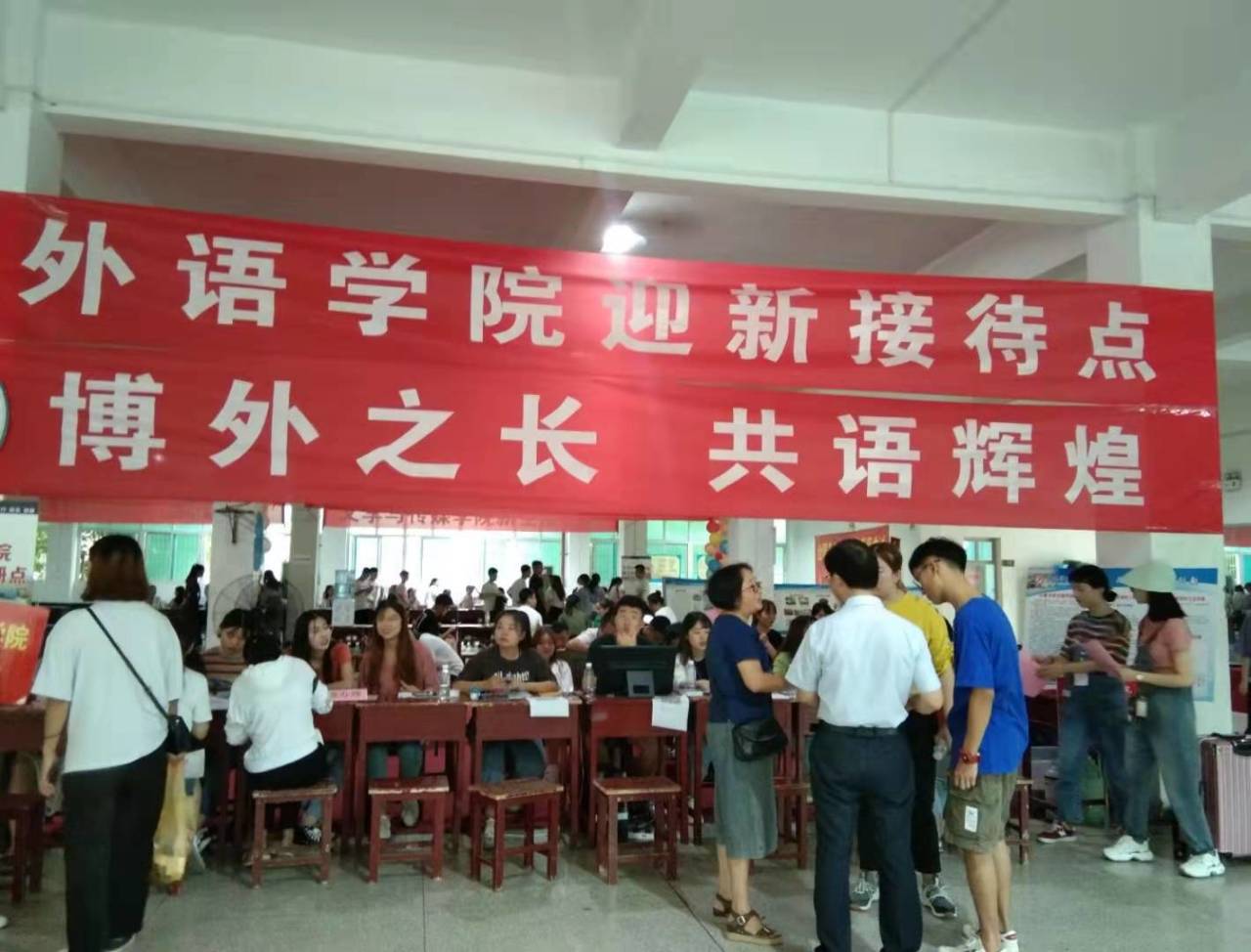 本次迎新工作受到学校和外语学院领导的广泛关注。学校领导在相关部门负责人的陪同下,来到我院迎新工作点视察工作,并对我院迎新工作给予了充分肯定。视察工作期间,领导们询问新生注册报道情况,与学生家长进行热切的交谈。