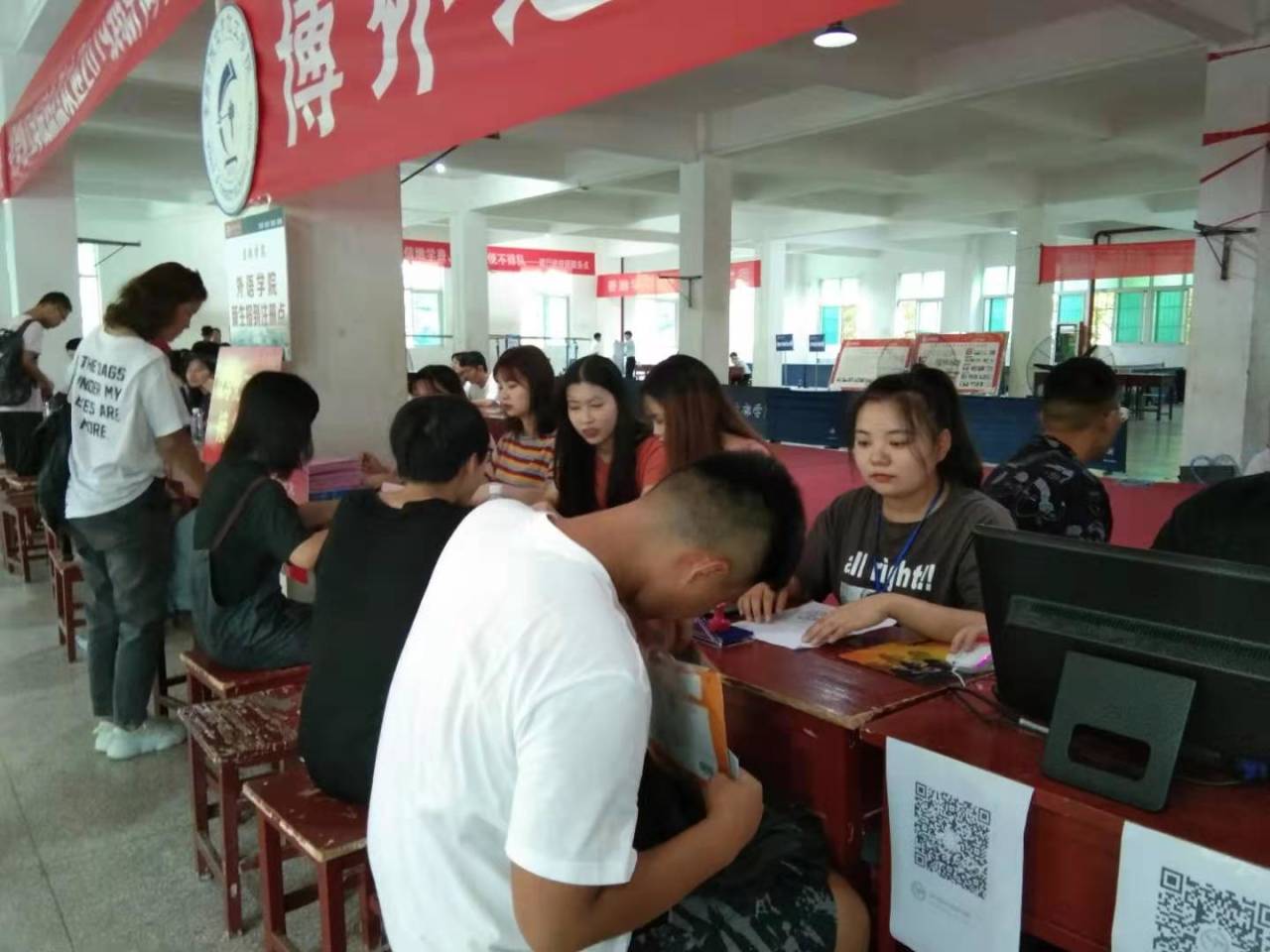 我院迎新工作在8月28日下午两点正式拉开帷幕。新生报到处的工作人员认真地为新生办理各项入学手续,辅导员梁博文耐心地解答新生及家长的疑问,消除他们内心的困惑,并安排志愿者帮助新生熟悉校园环境,办理住宿,带领新生参加入学面试等,为新生提供尽可能周到的咨询和服务,这让新生们感受到了不一样的温暖。