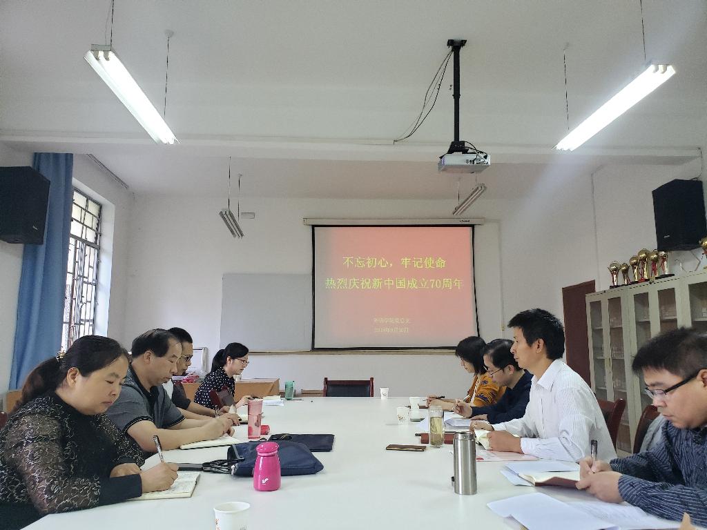 为稳步推进学院“不忘初心,牢记使命”主题教育工作,值此新中国70华诞之际,外语学院中心组开展“不忘初心,牢记使命”庆祝新中国70华诞主题党日活动。活动由外语学院党总支书记郭家平主持。