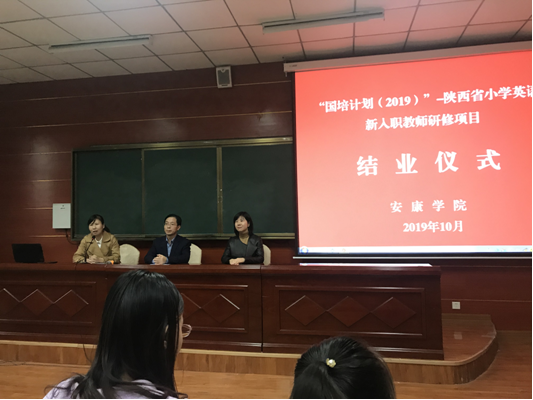 10月20日,国培计划(2019)—陕西省新入职小学英语教师研修项目结业仪式在我校江南校区1018室举行,副院长张哲华、胡卫卫出席,来自陕西省各地市的95名学员参加。