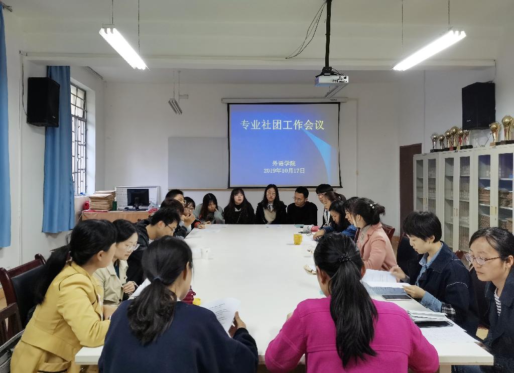 为了进一步规范专业社团管理、发挥第二课堂作用,创设外语学习氛围。10月17日,我院召开专业社团工作会议,副院长胡卫卫、英语系主任王欢、商务英语系主任陈蕾、辅导员及各专业社团指导教师、社团负责人参加了会议。会议由专业社团负责人冯琳主持。