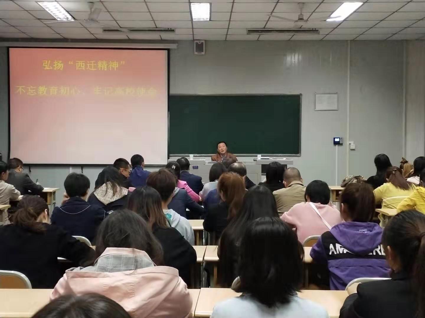 10月23日下午,校党委副书记胡波同志在10号教学楼1015为联系外语学院、教育学院百余名师生讲授了一堂主题为“弘扬‘西迁精神’ 不忘教育初心、牢记高校使命”的生动党课。