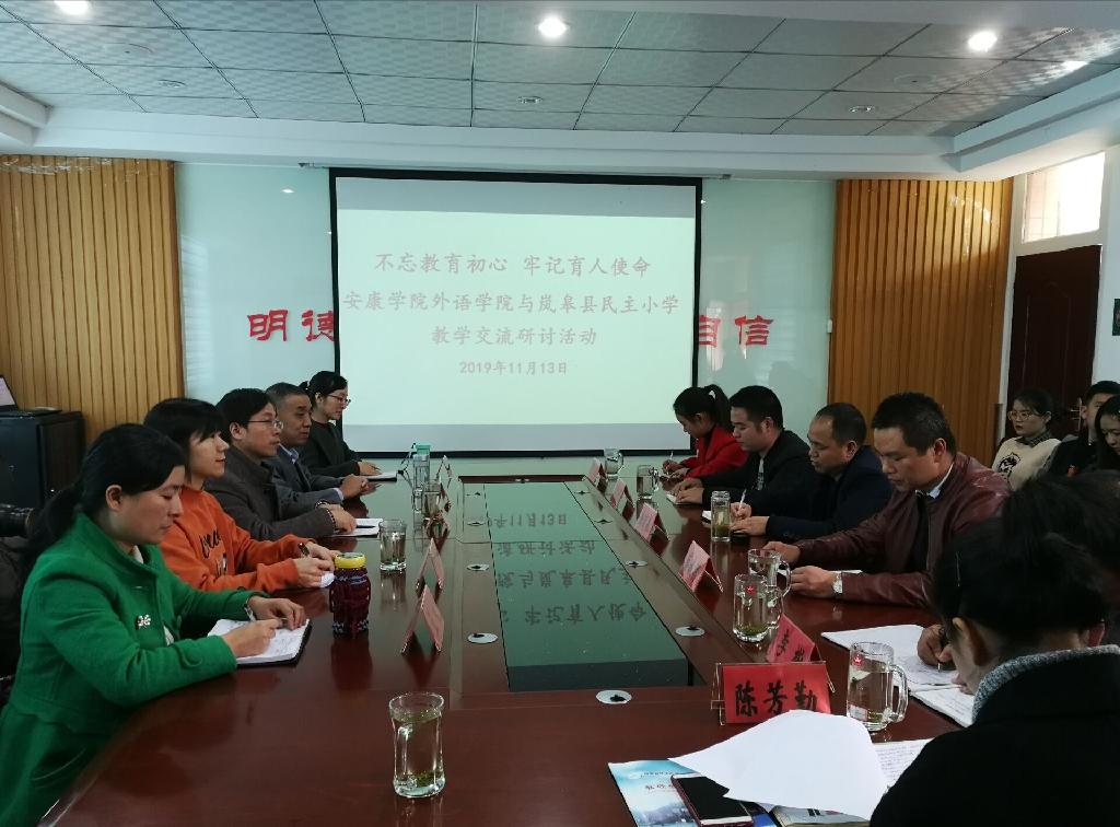 下午,中心组前往岚皋县民主小学开展教育教学研讨活动。部分中心组成员深入该校四年级课堂,观摩了英语课堂教学,并进行了深入的研讨交流。会后,副院长张哲华代表学院向民主小学捐赠了由我院骨干教师牵头编写的《实用中小学英语教学法教程》。