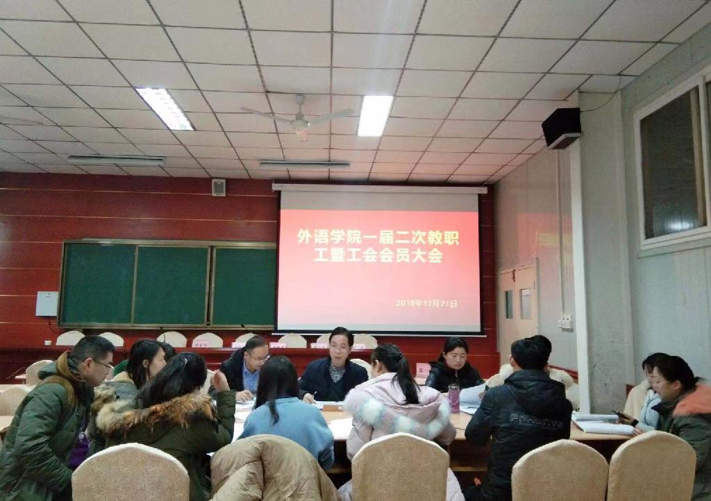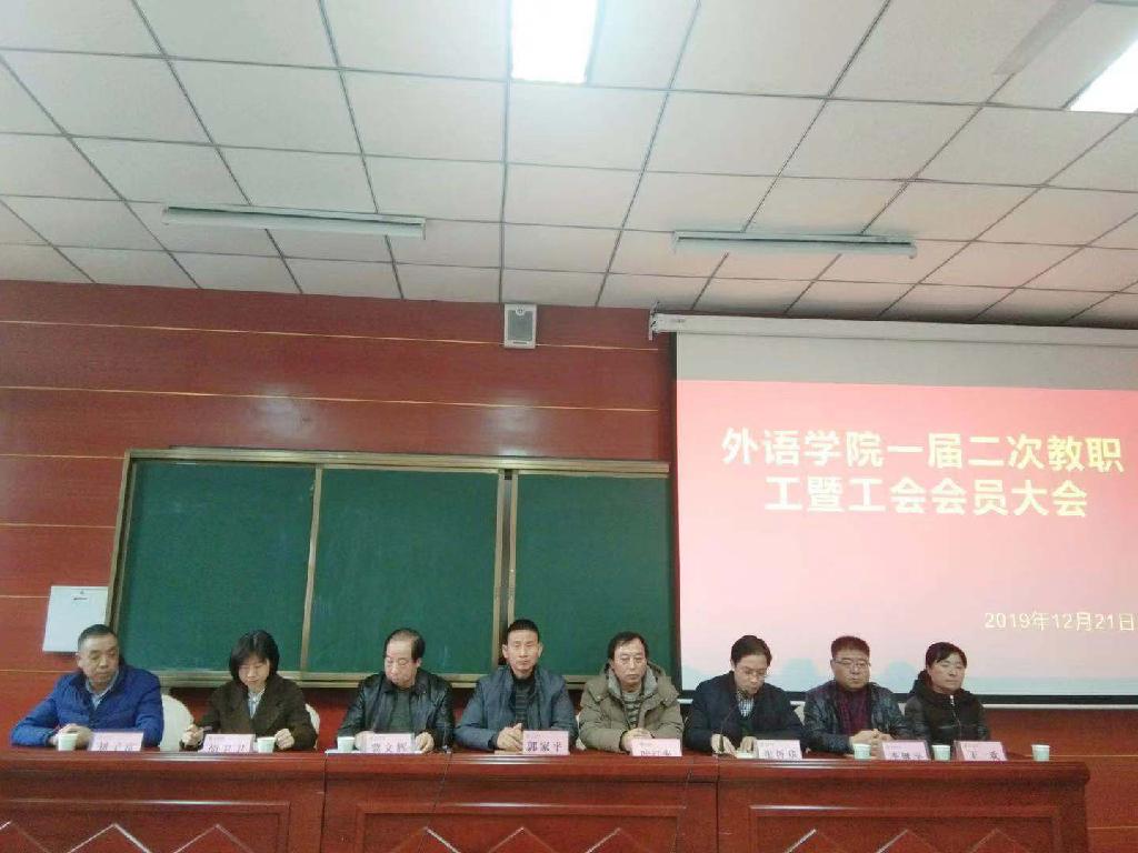 外语学院第二届一次教职工暨工会会员大会于2019年12月21日上午8:30在1018教室隆重召开。大会由工会外语学院分会主席冀文辉主持。