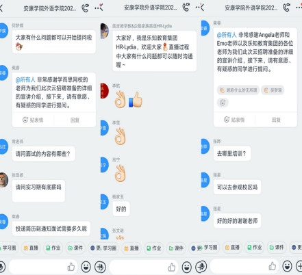 在活动开始之前,老师们分享了一些关于团队基本信息的图片和视频,使学生对用人单位有了初步了解,接着,老师们又从办公环境、薪金待遇、招聘岗位及流程等方面为大家做了详细介绍。在宣讲活动中,老师也注重与学生之间的互动交流,同学们在互动区的留言问题都会得到老师耐心的解答。在宣讲活动接近尾声之时,老师还细心的留下了联系方式,并表示欢迎同学们进行进一步的咨询了解。通过此次宣讲活动,我院共有 23名毕业生投递简历并积级准备面试。