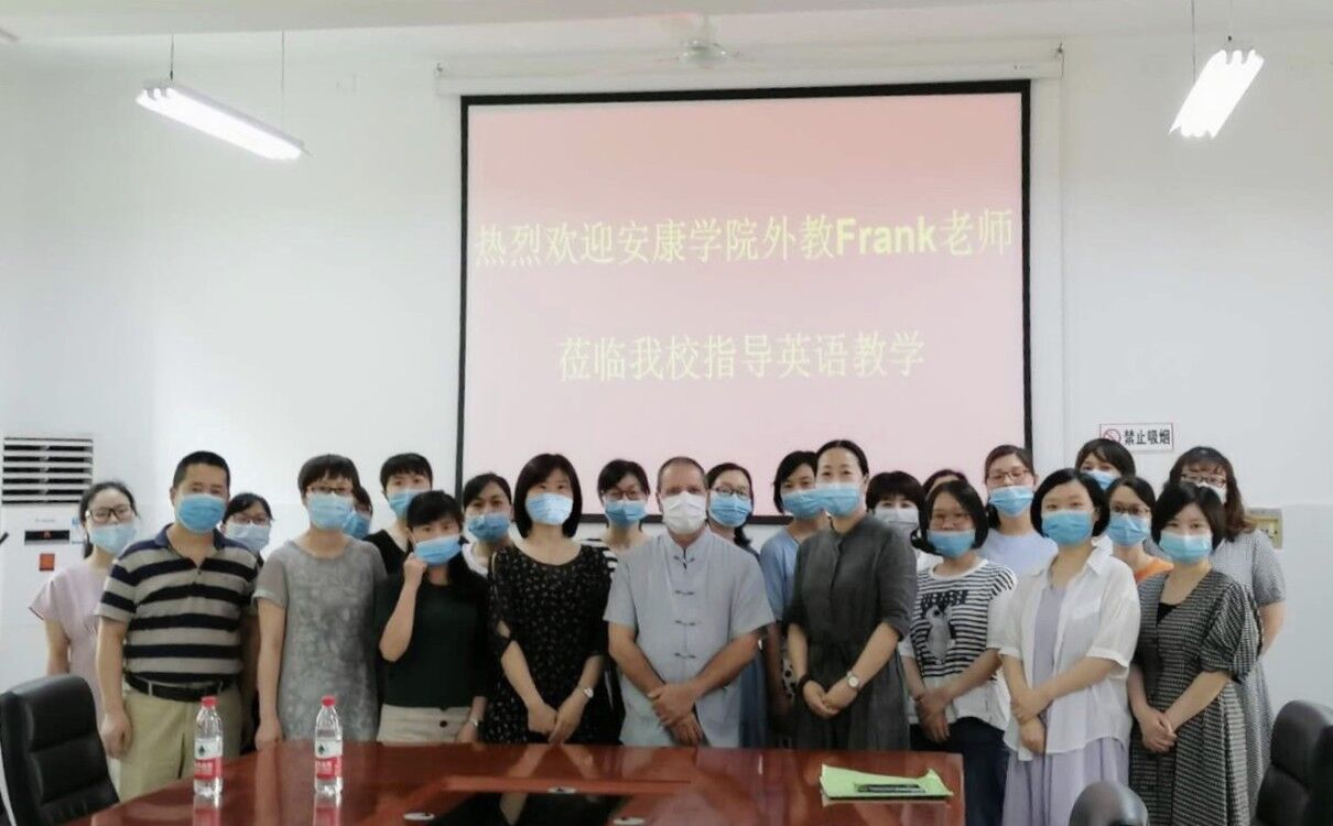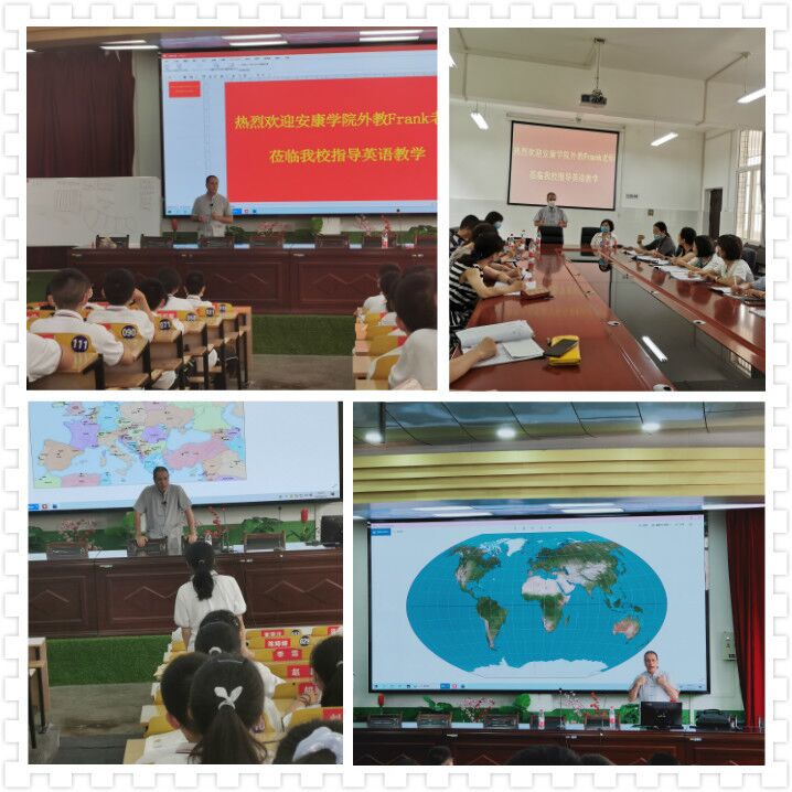 为服务地方外语基础教育,加强校外外示范实践基地建设,深入校校合作推进协同育人机制,6月15日,我校外籍教师Frank、外语学院副院长胡卫卫、骨干教师周玫、孙卫斌,应邀参加汉滨高中西校区中学英语教学研讨交流。汉滨高中西校区常务副校长鄢麒麟出席,七年级部分学生和全体英语教师参加了此次活动。