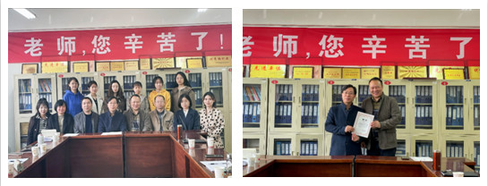 随后史传龙教授对我校受聘导师做了简要介绍,宣布聘任我校外语学院张哲华、胡卫卫、刘子富、刘燕、钱莉等五位教师为该校外语学院学科教学(英语)专业硕士研究生第二导师。王卫强教授和史传龙教授为第二导师代表张哲华、钱莉颁发了聘书。
