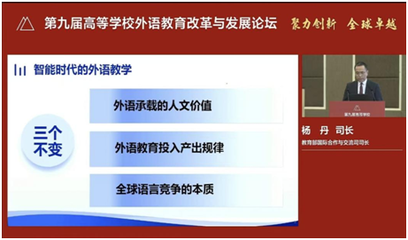 主旨报告环节中,教育部领导与多领域专家学者系统阐述了高等外语教育服务国家强国建设的发展方向。在随后的3场教指委论坛与9场专题论坛中,与会专家聚焦高等外语教育创新转型路径,围绕“三进”教学模式改革、人工智能赋能外语教育生态、国际化人才培养、中国自主知识体系构建等议题展开深度对话。多所高校校长分享了构建外语教育体系的实践经验,强调以数字化、国际化为抓手,推动教育链、人才链与产业链有机衔接。