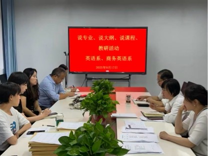 为迎接本科教育教学审核评估整改“回头看”专家入校考查,并深入探讨人工智能赋能教育教学背景下教师教学能力与人才培养质量的提升路径,9月17日下午,英语系在6208室组织开展了“说课程”专题教研活动。外语学院院长张哲华、副院长钱莉及英语系全体教师参加,活动由钱莉副院长主持。