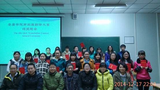 2014年12月17日晚,安康学院第四届翻译大赛“现场答辩暨颁奖仪式”在江南校区10号教学楼隆重举行。外语系教师胡青松、冯琳、孙卫斌、周凡雅、焦育玲担任评委,特聘教授邹先道和大学英语教学部主任李继平主阵现场答辩提问。“现场答辩”的有效创新和尝试收到了预期的效果。