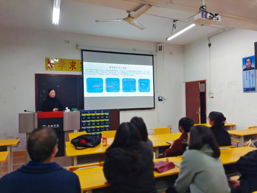 大学英语基础课程教学研究团队负责人向艳丽副教授给大家提供了精彩的大学英语创新课堂的示范教学。向老师通过精心设计,充分展示了如何在大学英语的教学中融入思政元素,利用语言的人文性功能,通过培养学生的人文主义精神,践行立德树人的使命。出席本次活动的各位教师结合我校大学英语教学工作实际,分别从学生英语学习积极性的调动、大学英语课堂教学创新、大学英语课程思政工作、提质培优等方面进行了深入的探讨和交流。