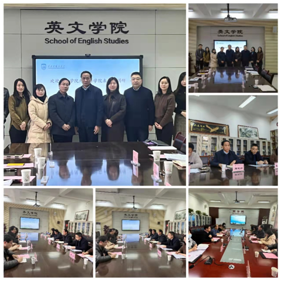 为进一步推进学科专业建设,提升人才培养质量,学习兄弟高校办学经验,12月9日,我院院长张哲华、副院长胡卫卫、系主任、学工办主任及青年骨干教师代表一行六人赴西安外国语大学英文学院及商学院开展学习调研。
