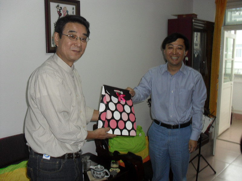 9月9日,值我国教师节和传统节日中秋节来临之际,外语系系主任哈红光教授在系办公室主任张哲华的陪同下,和外教合作教师一道,来到外教公寓亲切慰问了我院七位外教,他们是来自日本的赤松秀夫,来自美国的罗伯特.D.道格拉斯夫妇、艾伦·佩里夫妇和艾瑞克·库恩斯以及来自澳大利亚的梅根·杰西卡·博德。哈主任向外教赠送了中秋月饼和鲜花, 并向他们致以节日的问候。