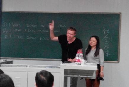 讲座伊始,Joshua Portinga先生首先运用游戏,激发听众兴趣,活跃现场气氛。随后,他图文并茂,生动地介绍了美国从幼儿园、小学到中学的教育机构、教育模式以及美国特有的教育方法。同学们通过提问,与美国朋友进行了热烈交流,在交流中大家深刻感受到了中美两国在教育理念、教育模式等诸多方面存在的差异。