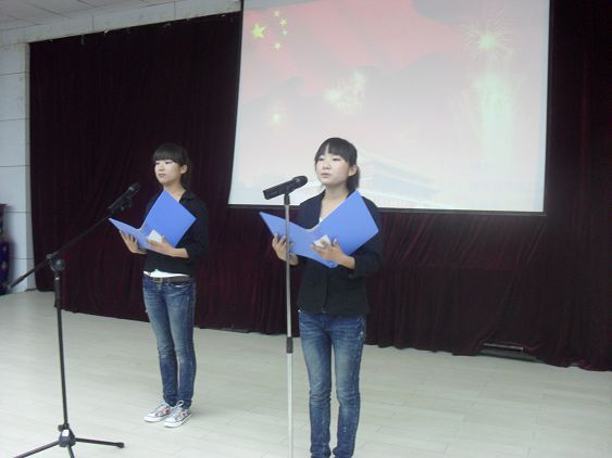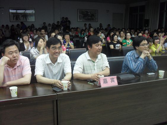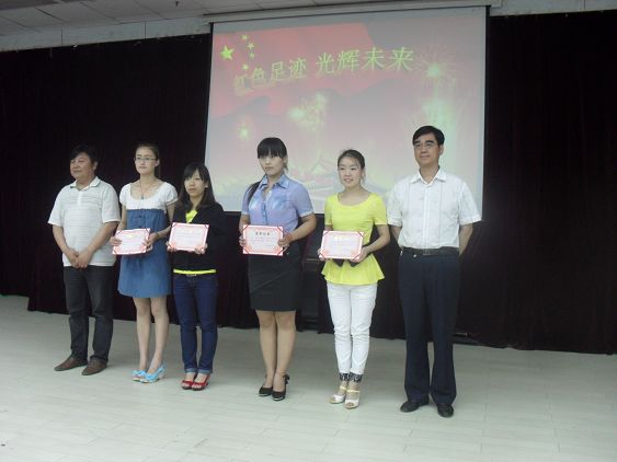 为迎接中国共产党九十岁华诞,歌颂党的伟大成就,增强同学们爱党爱国之情,提高当代大学生的政治觉悟,丰富学生的课余文化生活,5月8日晚,由学院团委主办,外语系和教科系承办的”红色足迹,光辉未来”诗歌朗诵大赛决赛在图书馆六楼报告厅举行. 学院团委书记鲁延安、学工部副部长郑武生、教科系党总支书记王辉、外语系党总支书记李岩出席朗诵活动.