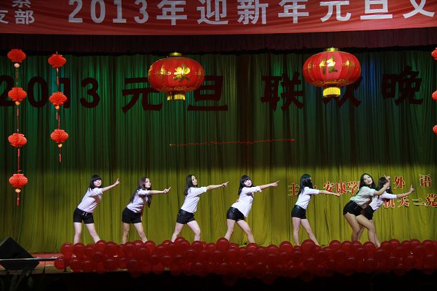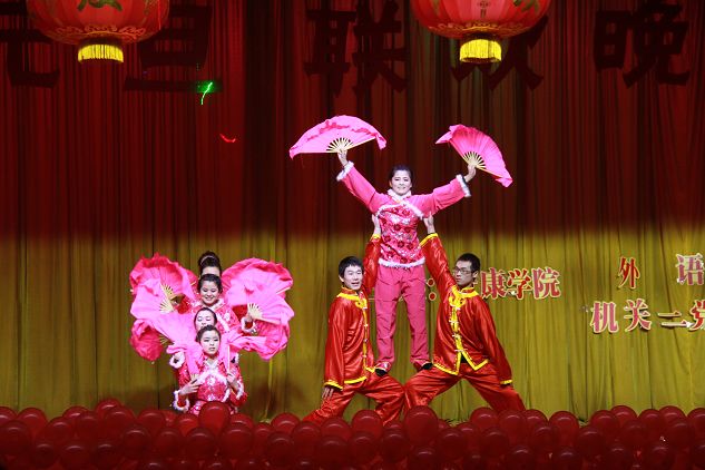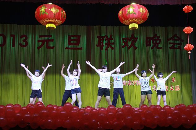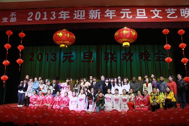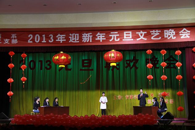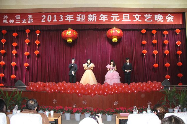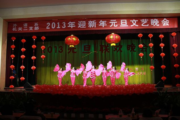 12月27日晚,江南校区大礼堂灯光璀璨,声乐齐鸣,掌声不断, 外语系、机关二党支部共同举办的2013年迎新年元旦文艺晚会隆重上演。学校党委组织部部长胡波、学工部部长郑树青、工会副主席许宝林,外语系主任哈红光、党总支书记李延福等机关二党支部的老师和外语系师生共同观看了文艺演出,英语外教Feremy、日语外教赤松秀夫、海岛千春也应邀欢参加了演出。师生同乐,齐聚一堂,告别收获的2012年,迎接希望的2013年。