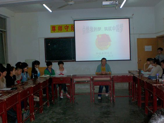 为深入学习贯彻党的十八大精神,全面理解“中国梦”的内涵,引导广大学生为实现国家富强、民族复兴而发奋学习、不懈努力。4月24日晚,外语系团总支组织召开“点燃我的梦,铸就中国梦”主题团日座谈会。系党总支书记李延福、团总支书记周静、辅导员杨厚东以及各班团干部等50余人参加了座谈会,座谈会由周静主持。