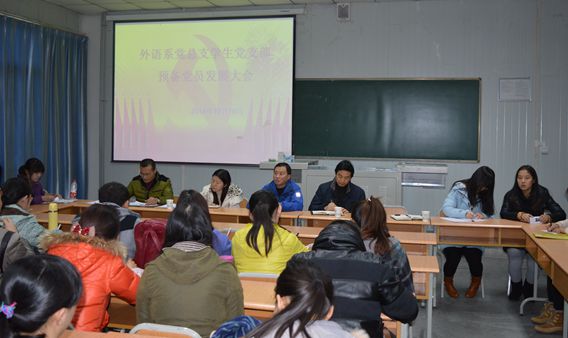 12月 16 日下午,外语系党总支学生党支部在1016教室召开了学生党员纳新和预备党员转正大会。学校党委组织部部长胡波、系党总支书记李延福、教工党支部书记胡卫卫、团总支书记任森龙、学生党支部书记杨厚东、以及学生党员、发展对象共32名师生参加了本次大会,会议由学生党支部书记杨厚东主持。