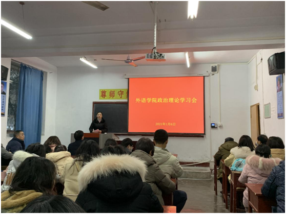 1月6日下午,外语学院在6108召开政治理论学习会议,学院领导班子、全体党员干部、全院教职工参加了学习会。会议由外语学院党总支书记肖红香主持。