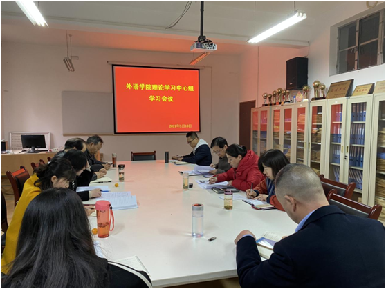 3月10日下午,外语学院在6109室召开中心组学习会。学院中心组成员、系(教研室)主任参加了会议,会议由党总支书记肖红香主持。