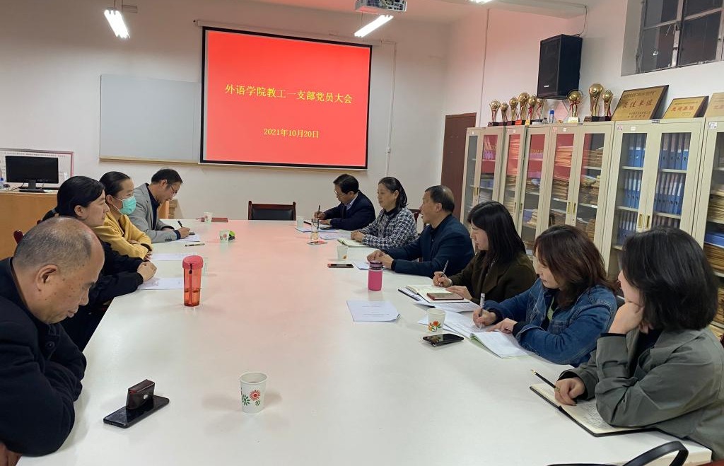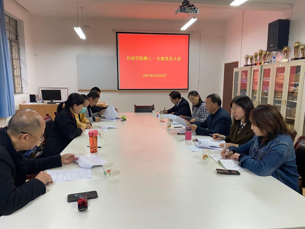 10月20日下午,外语学院教工第一党支部全体党员在6109组织召开党员大会,学习宣传贯彻习近平总书记来陕考察重要讲话重要指示精神,讨论研究支部制度建设,扎实推进基层党支部“七个有力”。校党委副书记胡波以普通党员身份参加大会,院党总支书记肖红香列席大会。会议由党支部书记陈玉平主持。