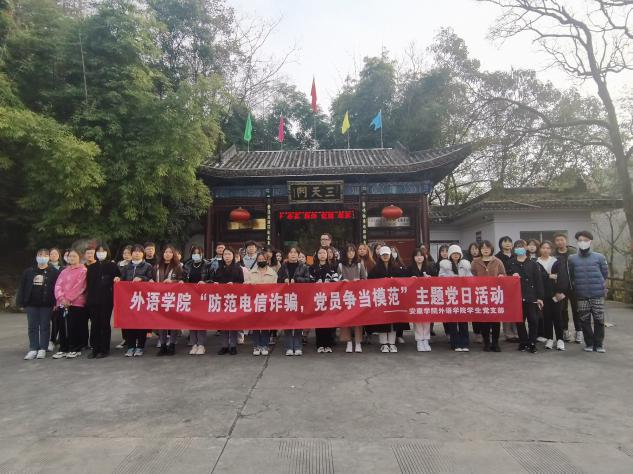 为牢记作为一名党员的担当与使命,提高全民的防诈骗意识。11月27日下午,外语学院学生党支部赴香溪洞风景区开展“防范电信诈骗,党员争当模范”主题党日活动。学生党支部全体党员和部分积极分子参加了本次活动。