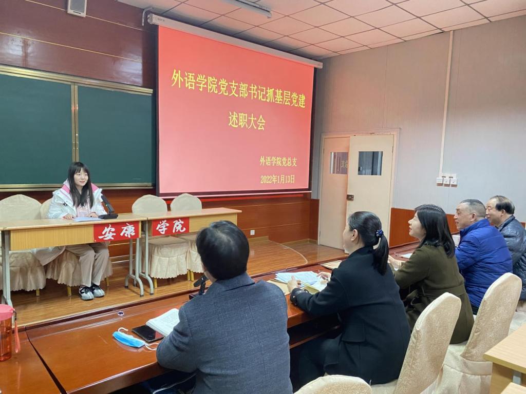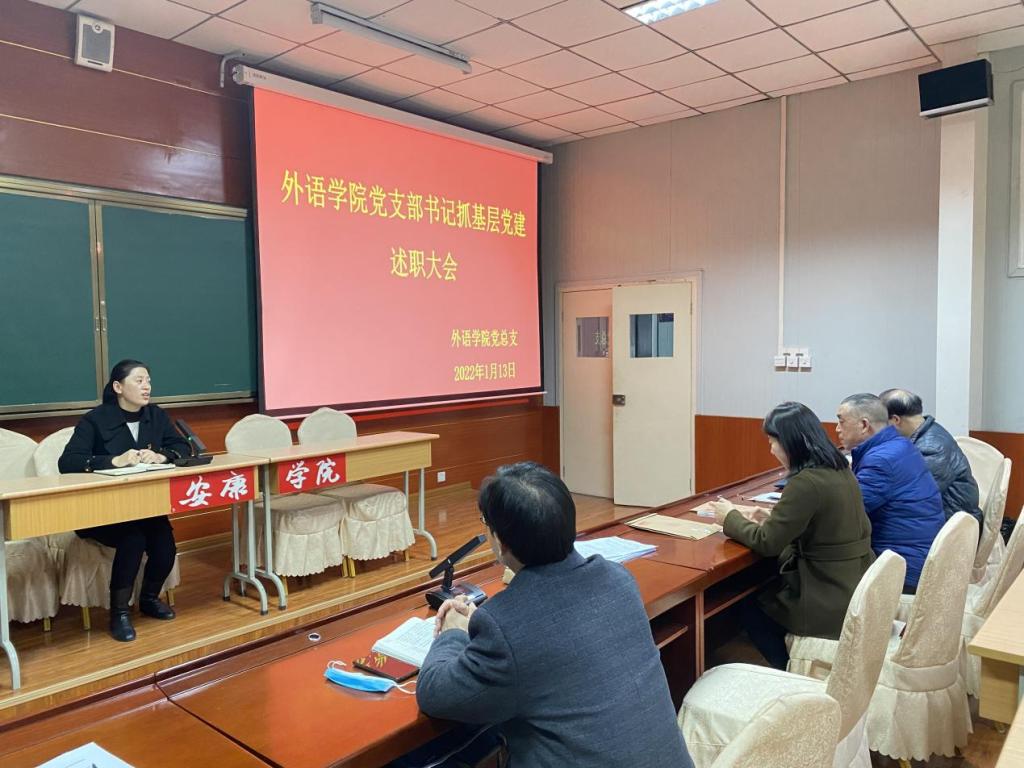为认真贯彻学校党委《关于做好2021年度基层党建述职评议考核工作的通知》文件精神,1月13日下午,外语学院党总支2021年党支部书记抓基层党建述职大会在1018召开,总支委员会委员、各党支部书记、系(教研室)主任参加了会议。教工一支部书记陈玉平、教工二支部书记刘子富、学生支部书记李梦分别作述职报告。会议由党总支书记肖红香主持。