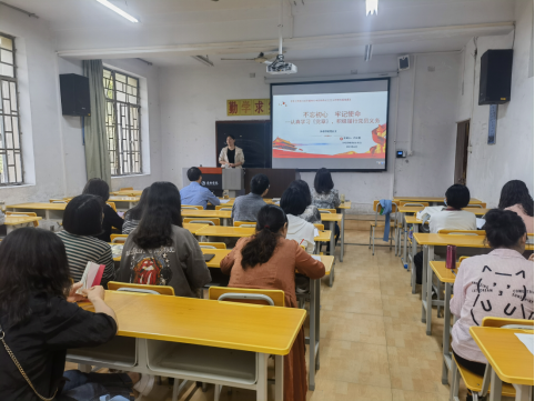 为进一步落实好学习贯彻习近平新时代中国特色社会主义思想主题教育,6月7日下午,外语学院党总支书记肖红香以“‘不忘初心 牢记使命’---认真学习《党章》,积极履行党员义务”为题在6107为外语学院全体党员讲专题党课,引导全体党员认真学习《党章》,积极履行党员义务。